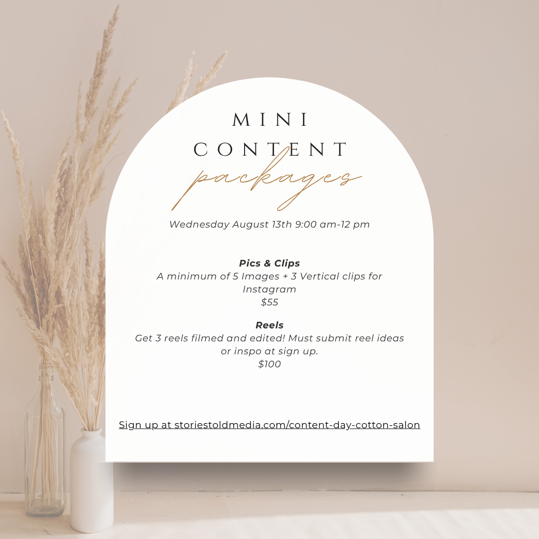 Elevate your brand with our Mini Content Day—get professional photo and video clips on Wednesday, August 13th between 10 am- 12 pm. Must sign up by midnight on Monday, August 11th.
